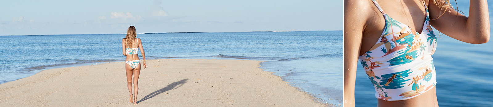 This year's swim collection brings together the best styles and designs. In the Roxy swimwear collection you'll find the most beautiful bikinis, swimsuits and stylish board shorts. Alongside this we have beachwear for all occasions from simple cover-ups to cool shorts, playsuits, tops and beach trousers. There is everything an active girl needs to stay stylish at the beach. With individual designs and pieces to suit every taste you'll find just the right piece for your wardrobe whether you're going on a beach holiday, a serious surf session or looking for something to slip on every day.